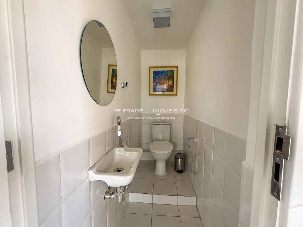 Primeiro piso: 3 quartos (1 suíte master), banheiro social, sala de jantar, lavabo, cozinha, área de serviço e banheiro de funcionário.