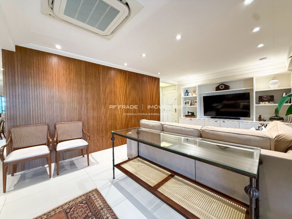 Excelente apartamento bem decorado de 215m2 com ampla sala com três ambientes, ampla varanda integrada com a sala, quatro quartos sendo três suítes, lavabo, ampla copa-cozinha, lavanderia, dependência completa e duas vagas na garagem e amplo box.