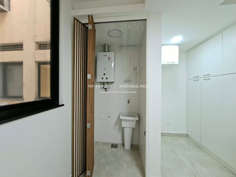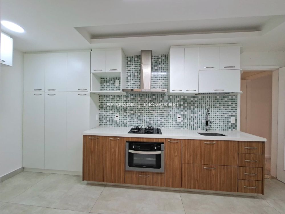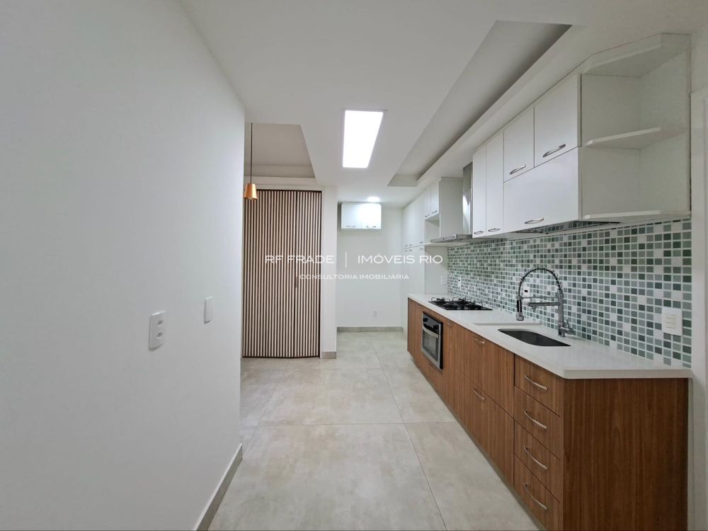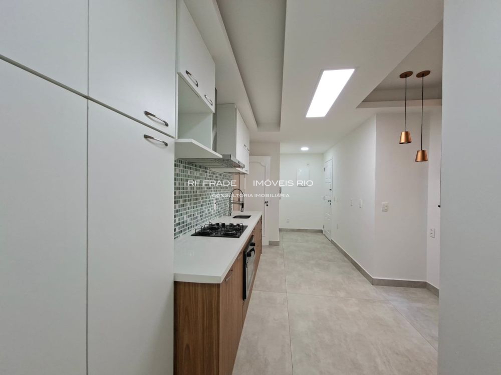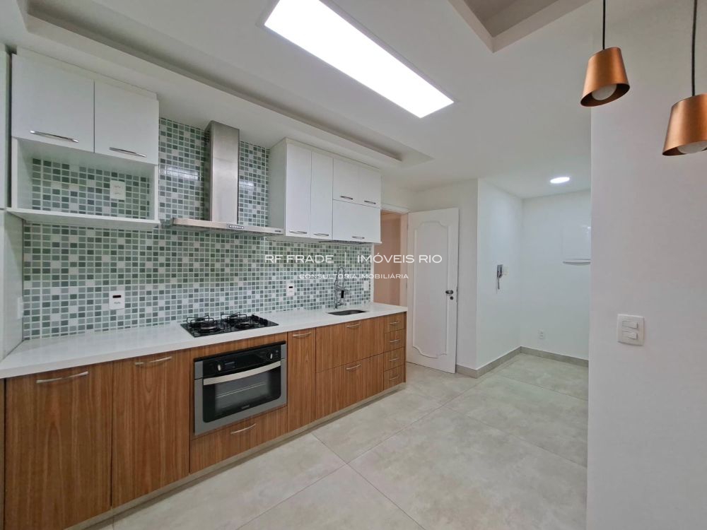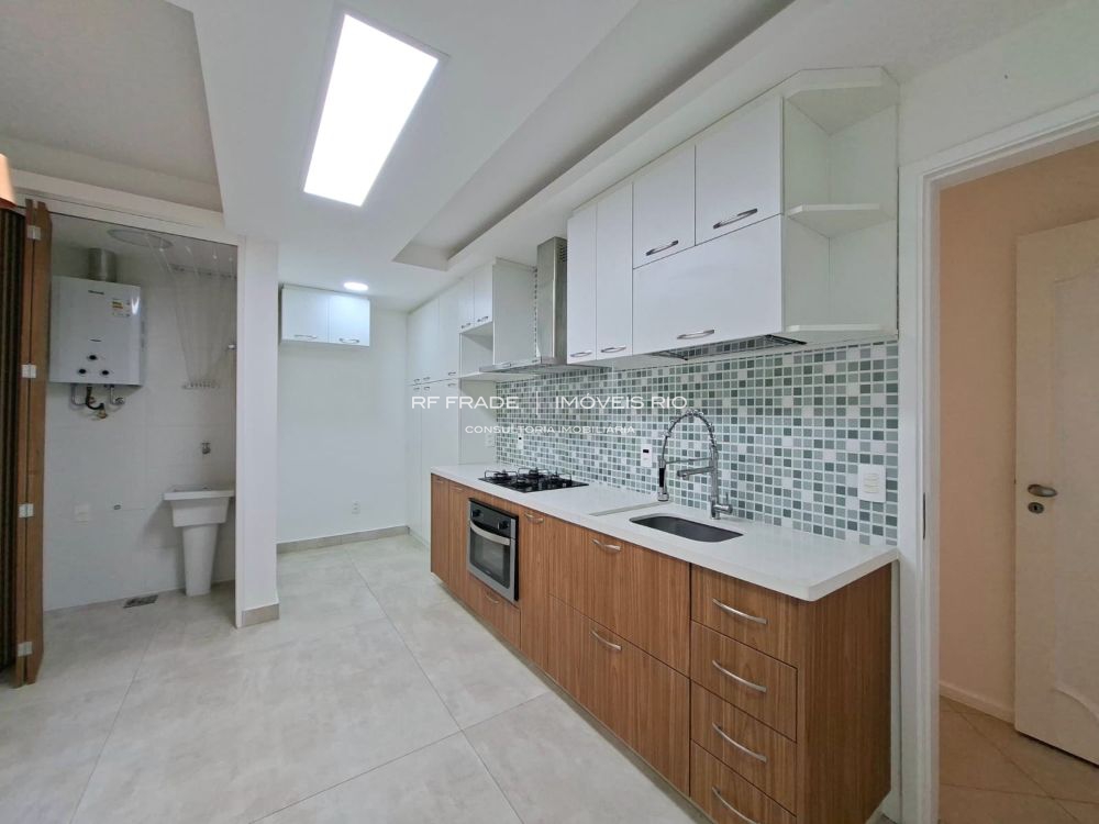 A cozinha possui armários planejados Roma Mobili, iluminação em LED embutida, gavetas com amortecedores, pia em nanoglass, cooktop, coifa e forno embutido, além de lavanderia separada por porta de correr.