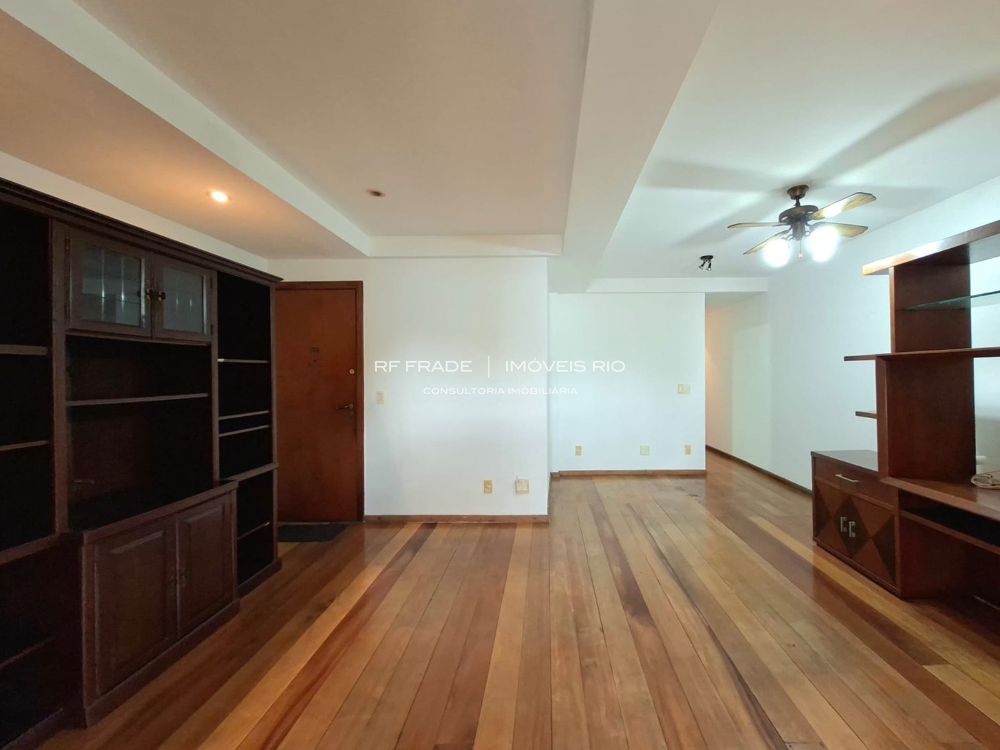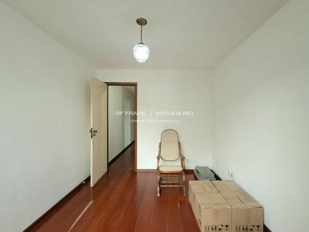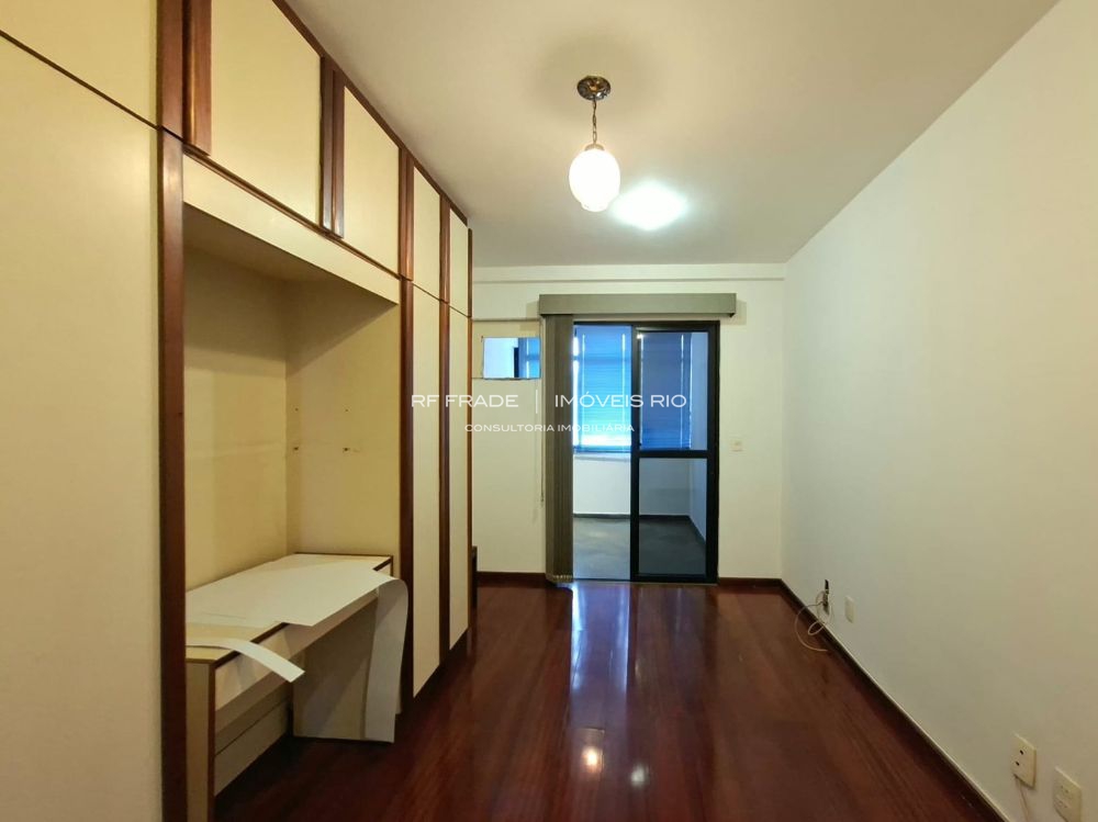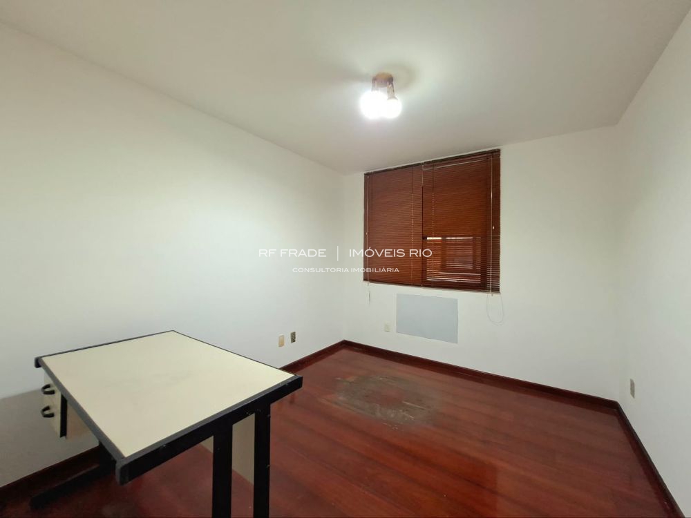 Apartamento lâmina com 129 m², sol da manhã, vista para a Pedra da Gávea e necessitando de modernização.