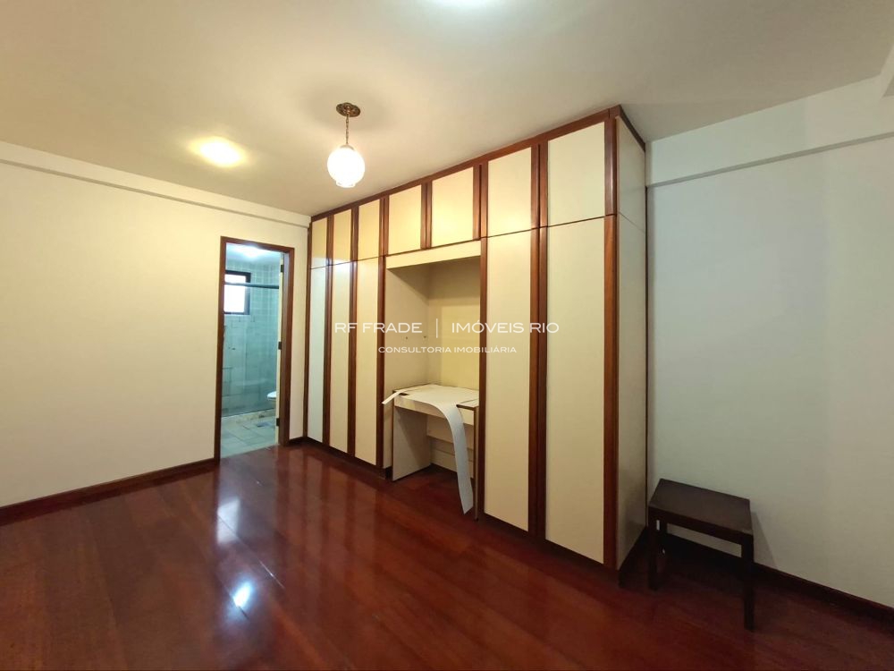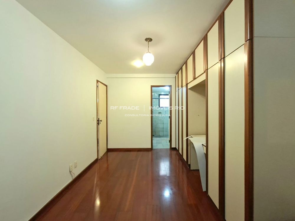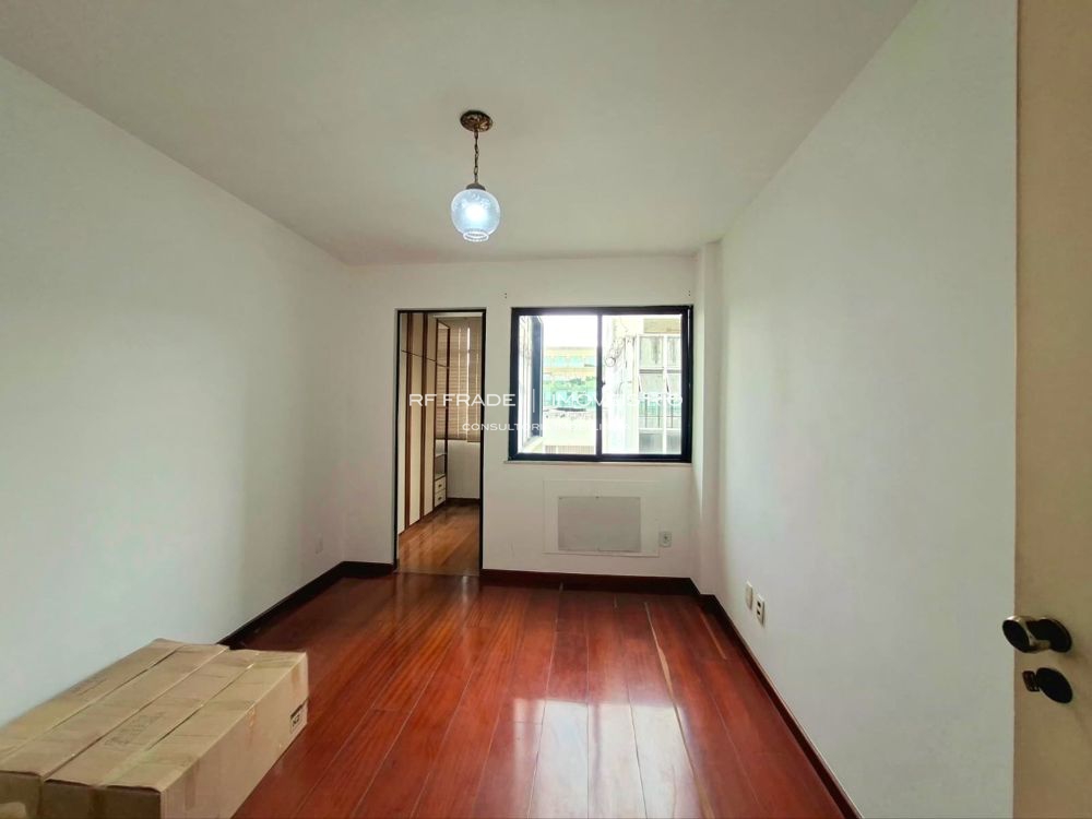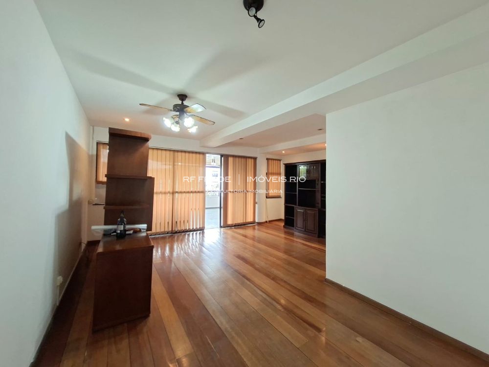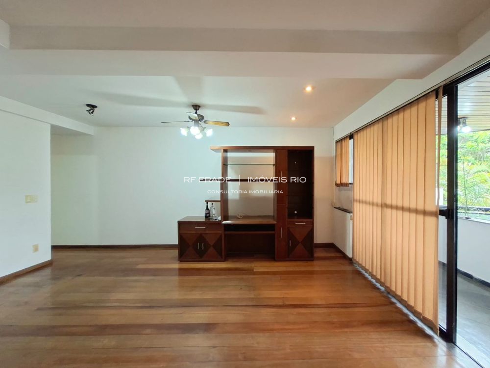 Apartamento lâmina com 129 m², sol da manhã, vista para a Pedra da Gávea e necessitando de modernização.