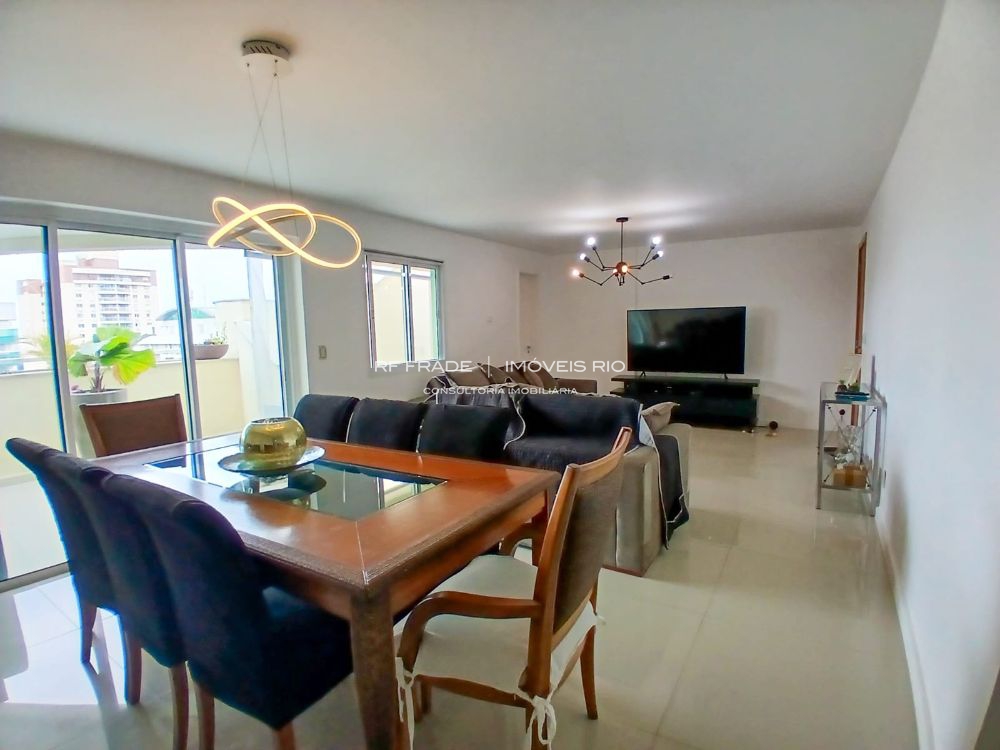 Cobertura Duplex sendo no primeiro pavimento possui ampla sala em vários ambientes, 4 quartos, sendo duas suítes, cozinha com área de serviço, duas varandas sendo que uma com ofurô e com acesso à suíte principal.
