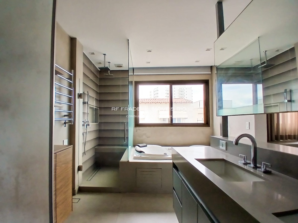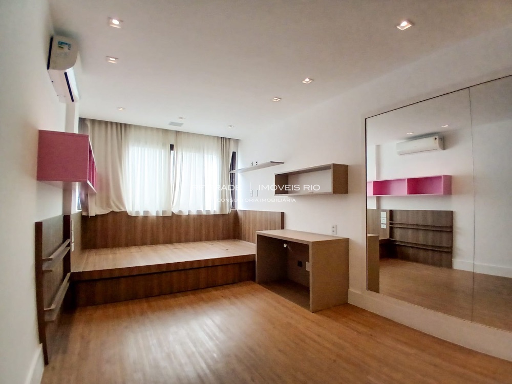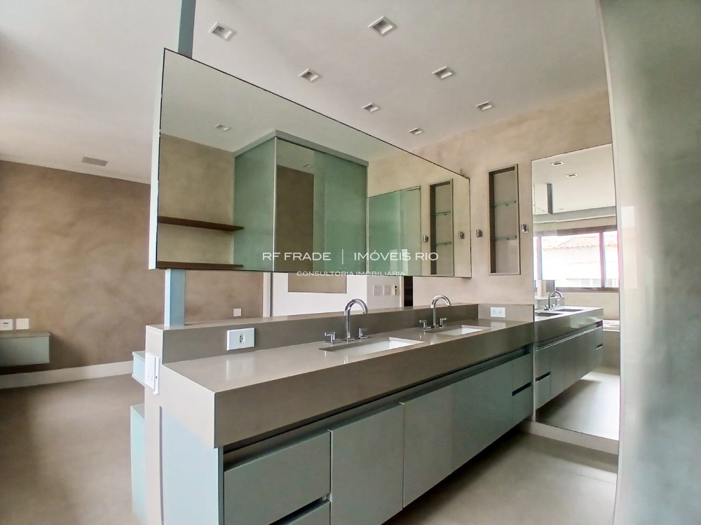No segundo pavimento, piscina com vista livre para a Pedra da Gávea, espaço