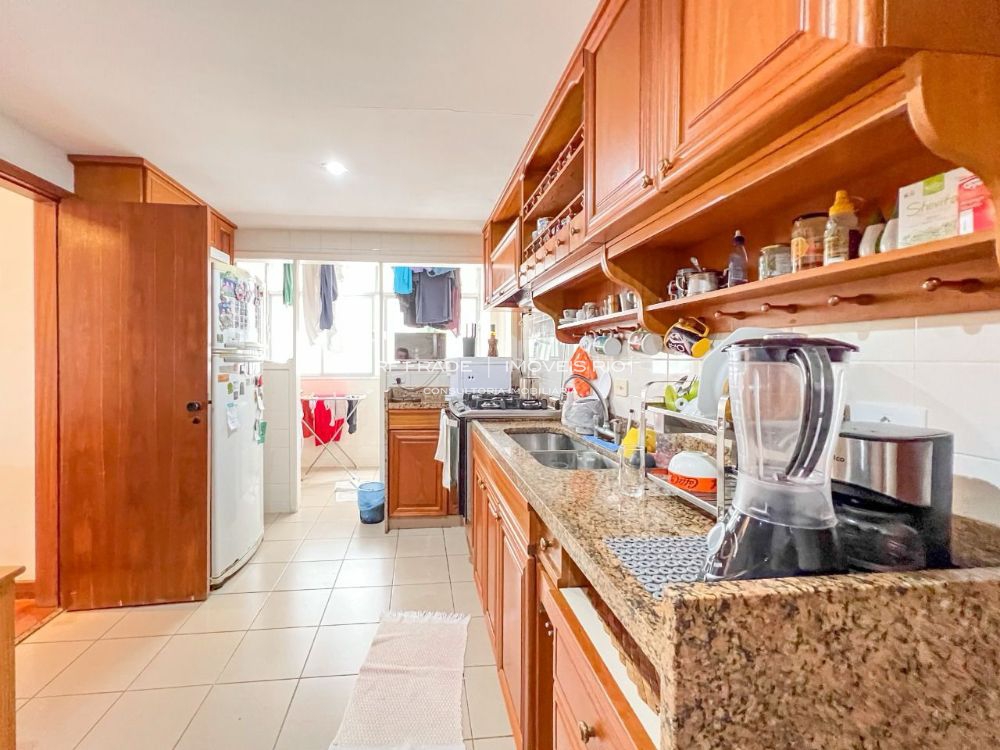 Este belíssimo imóvel possui 186 m2 muito bem dividido em: sala em 2 ambientes integrada a um varandão com vista lateral para o Mar, lavabo, 3 quartos sendo uma suíte com closet, banheiro social completo, copa e cozinha, área de serviço e dependência completa de empregada. 2 vagas na escritura + box de depósito.