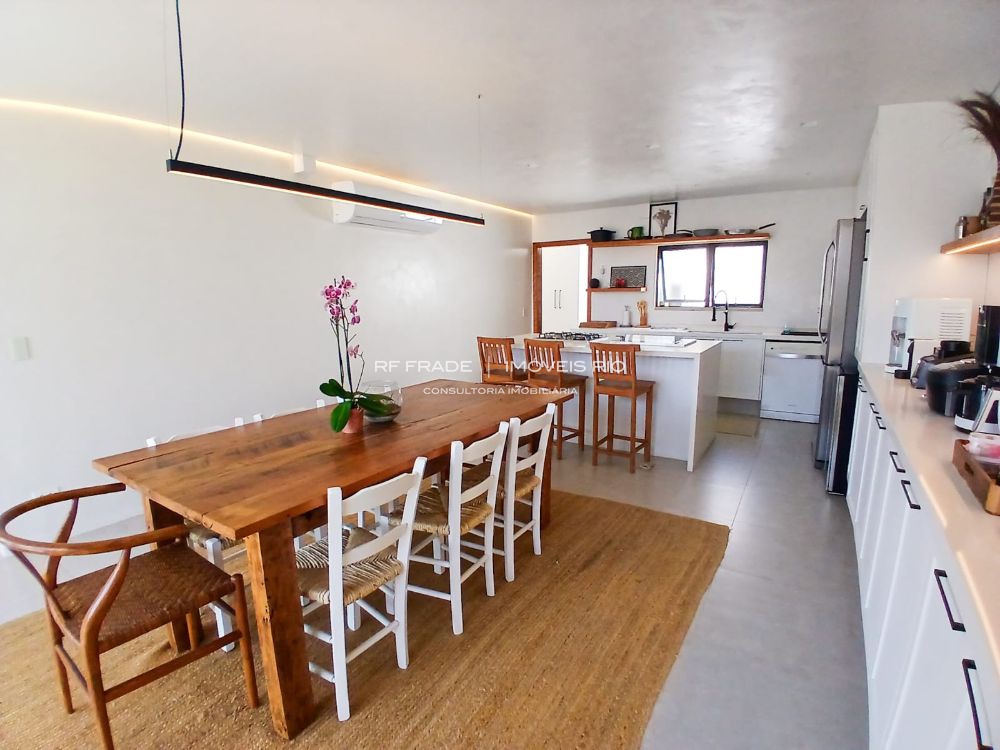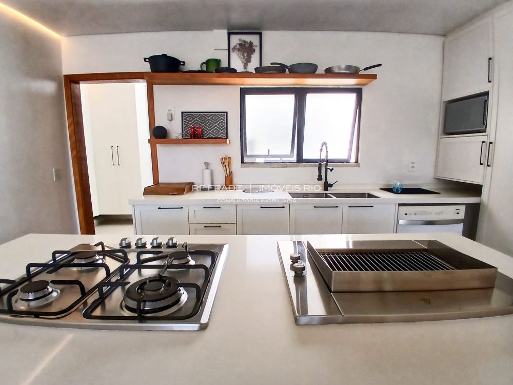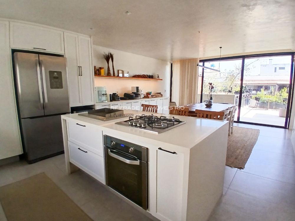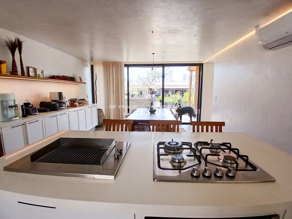 Cozinha planejada com ilha, churrasqueira integrada, três suítes luxuosas (Master com Jacuzzi). Ar split em todos os ambientes.