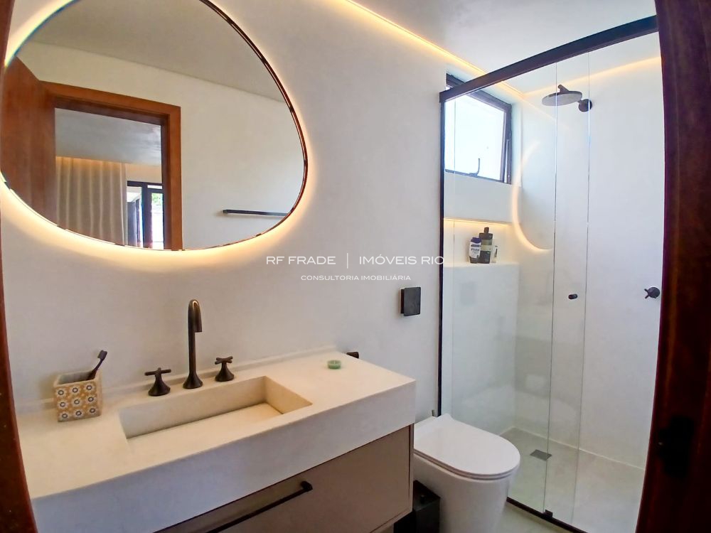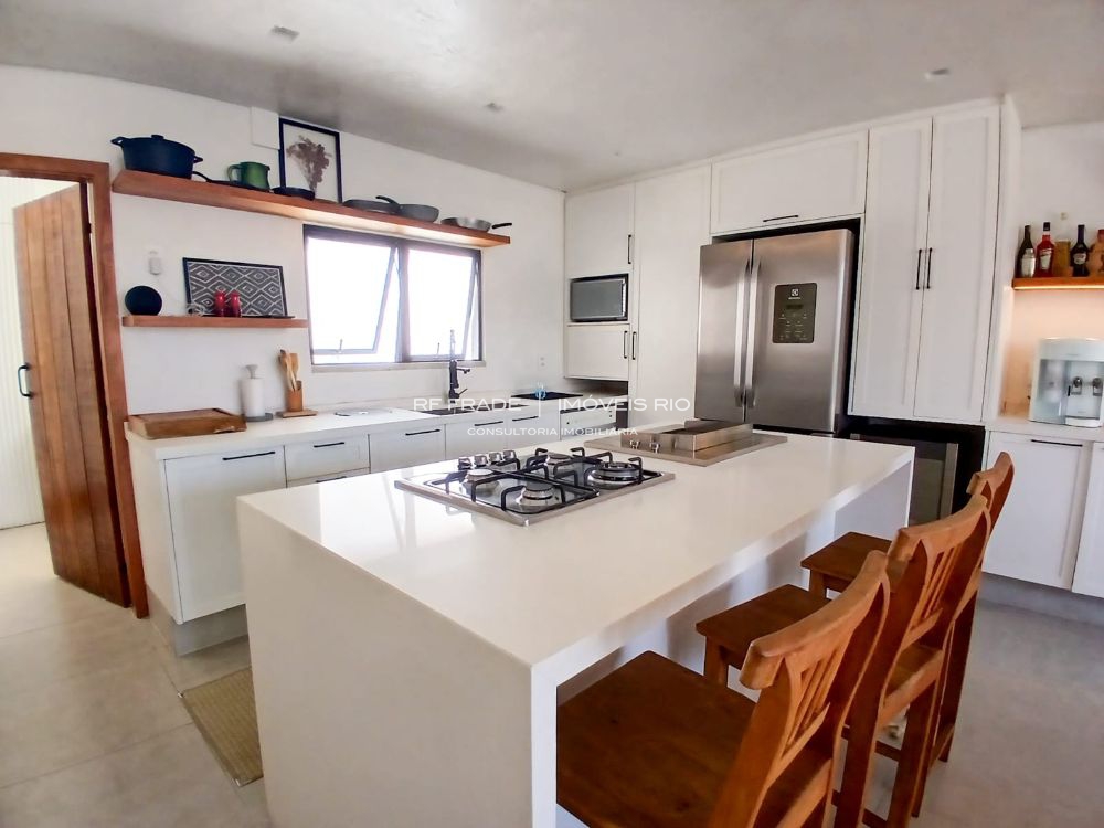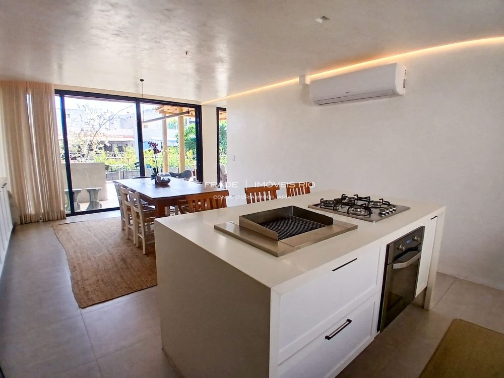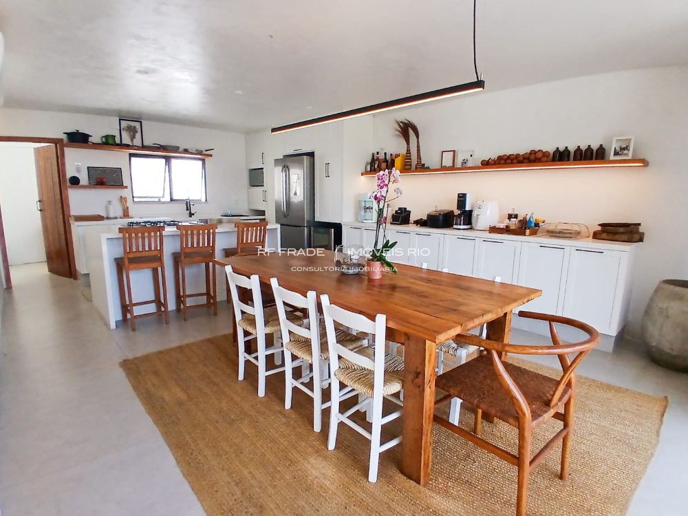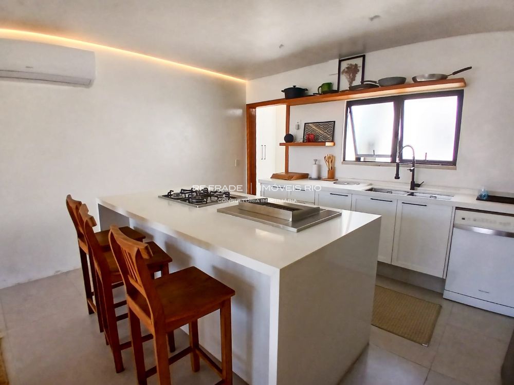 Cozinha planejada com ilha, churrasqueira integrada, três suítes luxuosas (Master com Jacuzzi). Ar split em todos os ambientes.
