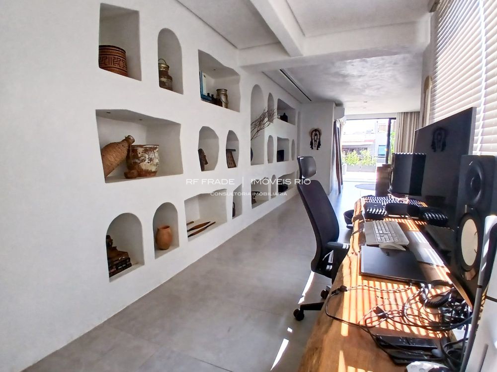 Primeiro pavimento com sala em dois ambientes, escritório e som ambiente.