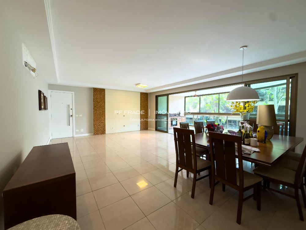 Varandão com fechamento em cortina de vidro e espaço gourmet, salão em 2 ambientes com ar split, lavabo, 4 suítes sendo 1 canadense com um dos quartos transformado em closet, cozinha planejada, área de serviço separada e dependência completa, box no subsolo, com 4 vagas de garagem em prédio moderníssimo super conservado.