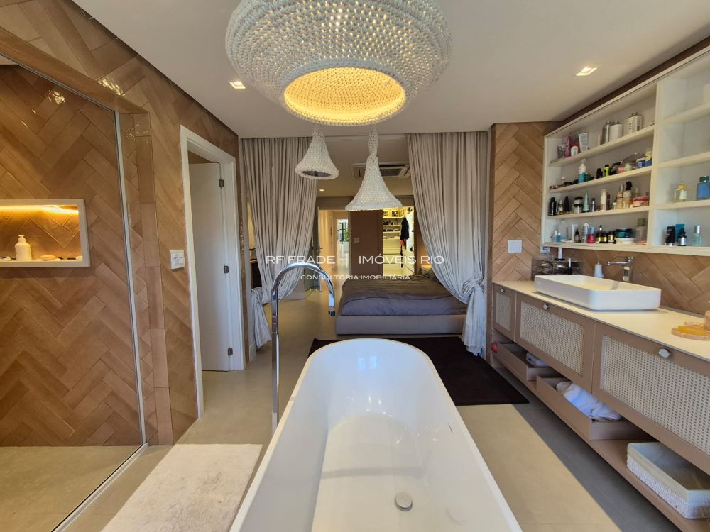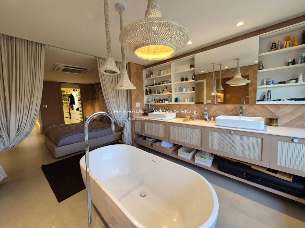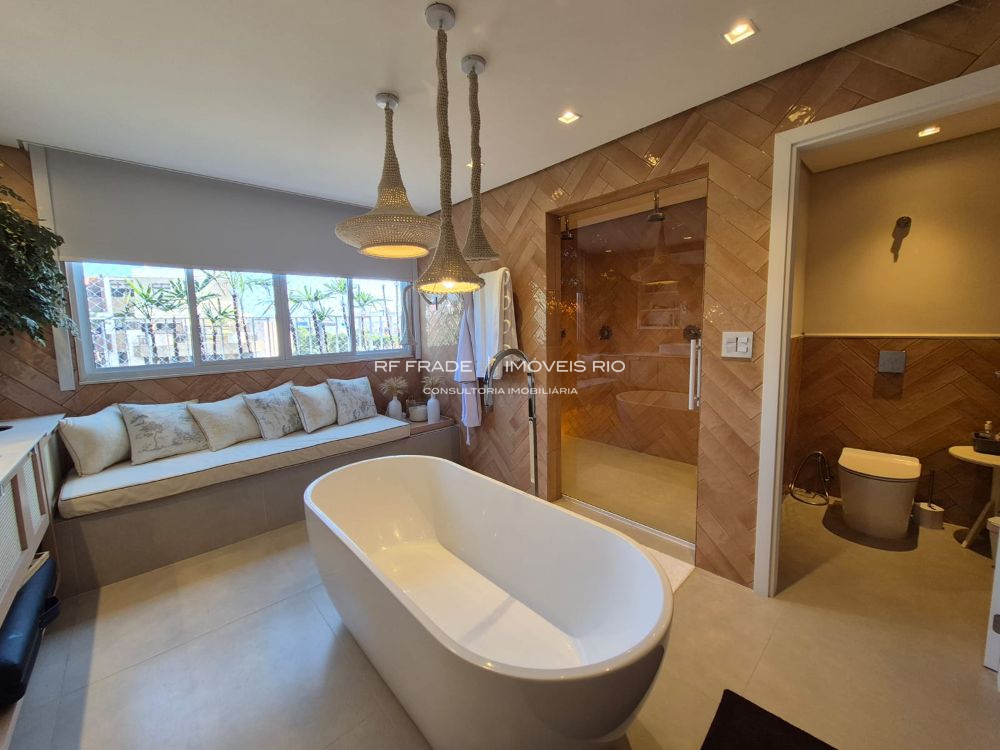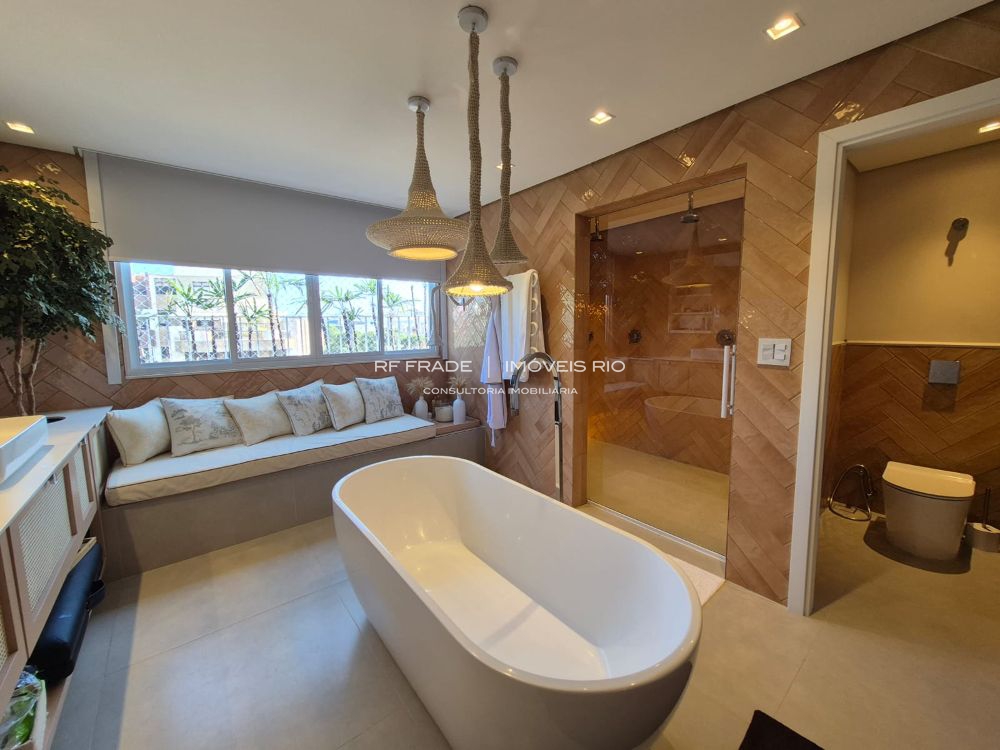 Barra da Tijuca, Jardim Oceânico, linda cobertura linear, recentemente reformada, 355m2 no iptu, excelente área externa com piscina , ducha e área gourmet, parte interna com ampla sala integrada à copa-cozinha, 3 suítes sendo a máster com closet, sala de banho ( uma experiência á parte ), lavanderia, área de serviço e dependência completa.