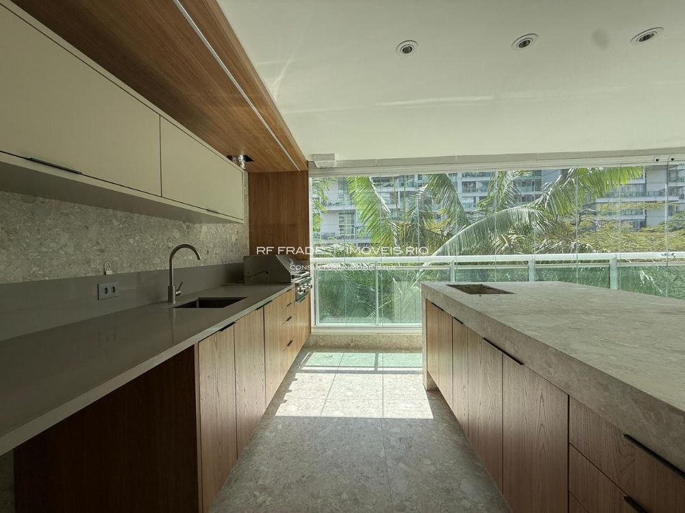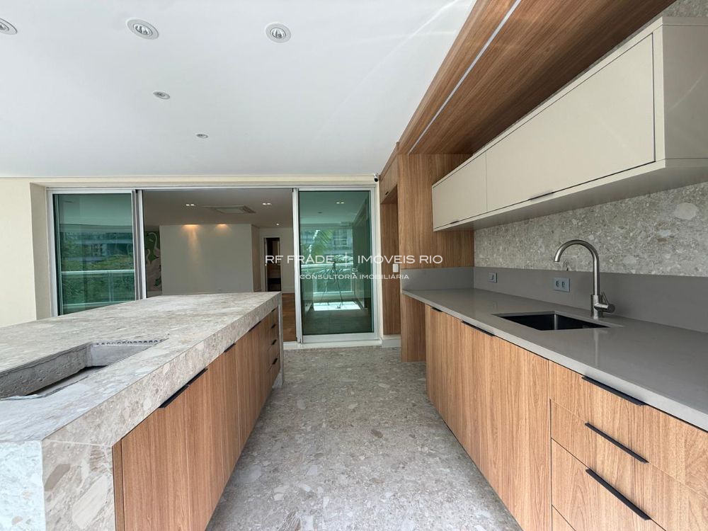 Peninsula. FontVielle. Apartamento original quatro quartos transformados em três suítes sendo a principal com closet. Varandão com área gourmet, ilha, churrasqueira, espaço para geladeira side by side. Salão multiambiente, cozinha repleta de armários de ótima qualidade, área de serviço, dependência completa de funcionários. Todas as três suítes são avarandadas. Totalmente climatizado e modernizado. Segurança 24hs. Melhor condo da Península. Entrega imediata. Fácil visitação