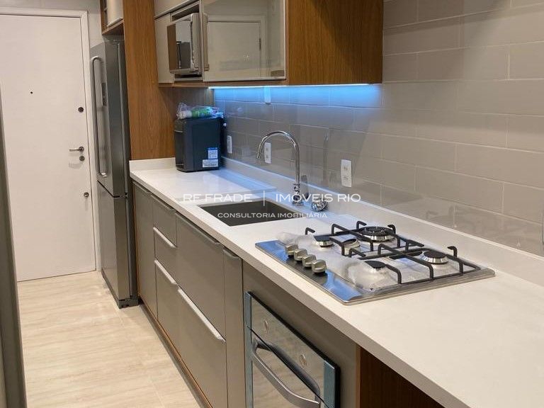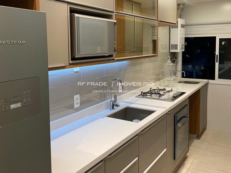 Americas Park, lindo apartamento, 105m2, repleto de armários planejados, varandas gourmet, sala com dois ambientes,lavabo , três quartos modificado para dois quartos, uma suíte, closet, cozinha americana, área de serviço, 02 vagas de garagem. Infraestrutura de lazer e serviço: salão de festas no prédio. O condomínio possui clube com piscinas sendo uma aquecida, quadra de futebol com sintética, carrinho que leva para o Shopping Rio Design Barra e Vogue Square e balsa para praia.