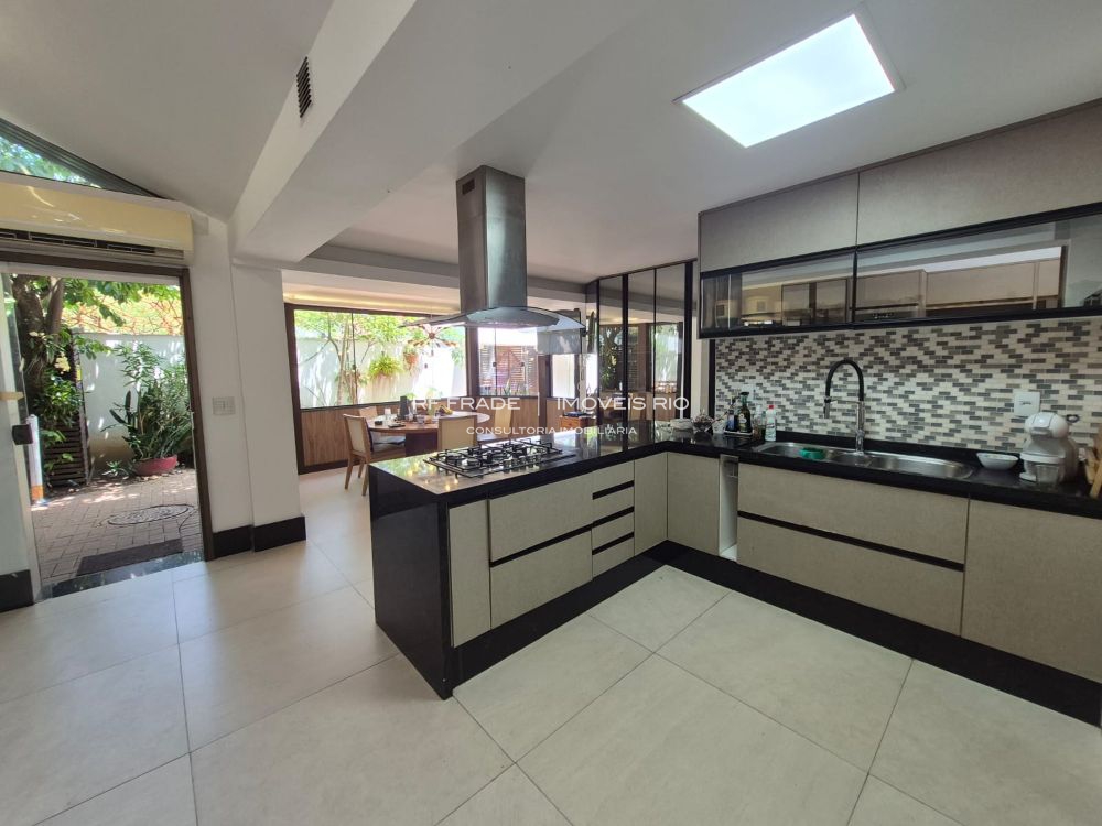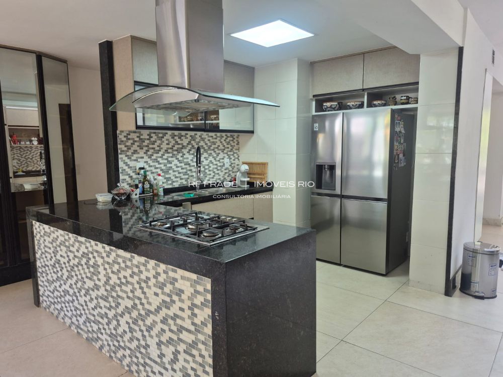 Cozinha Gourmet Integrada: Moderna e funcional, equipada com ilha central, cooktop, coifa de design e armários planejados de altíssima qualidade. O balcão em granito escuro e a iluminação embutida criam o cenário perfeito para encontros gastronômicos.