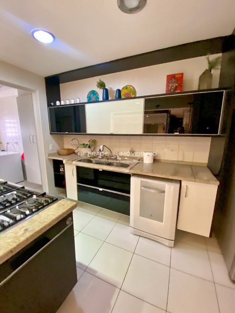 Cozinha com integração à sala e à varanda, em um ambiente amplo, fluido e banhado por luz natural.