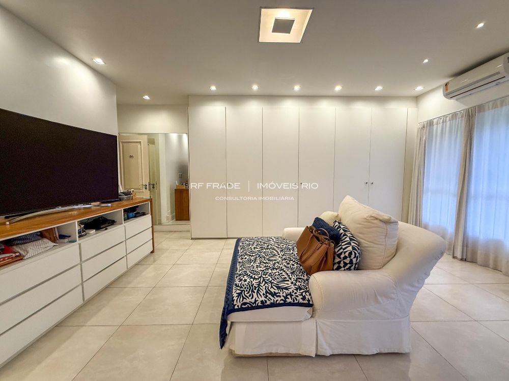 Apartamento muito bem localizado no Jardim Oceânico. Totalmente climatizado e reformado (inclusive elétrica e hidráulica). Entrar e morar. Total de 240m2 no IPTU com planta circular rara. O imóvel oferece ótima varanda, sala de jantar, sala de televisão, sala de estar, copa-cozinha americana, ampla área de serviço, dependência completa de funcionária, total de três suítes sendo duas com varanda. Quatro vagas na Escritura. O prédio ainda oferece churrasqueira, espaço para andar de bike e patinete (Play) e porteiro que funciona das 7hs as 18hs.