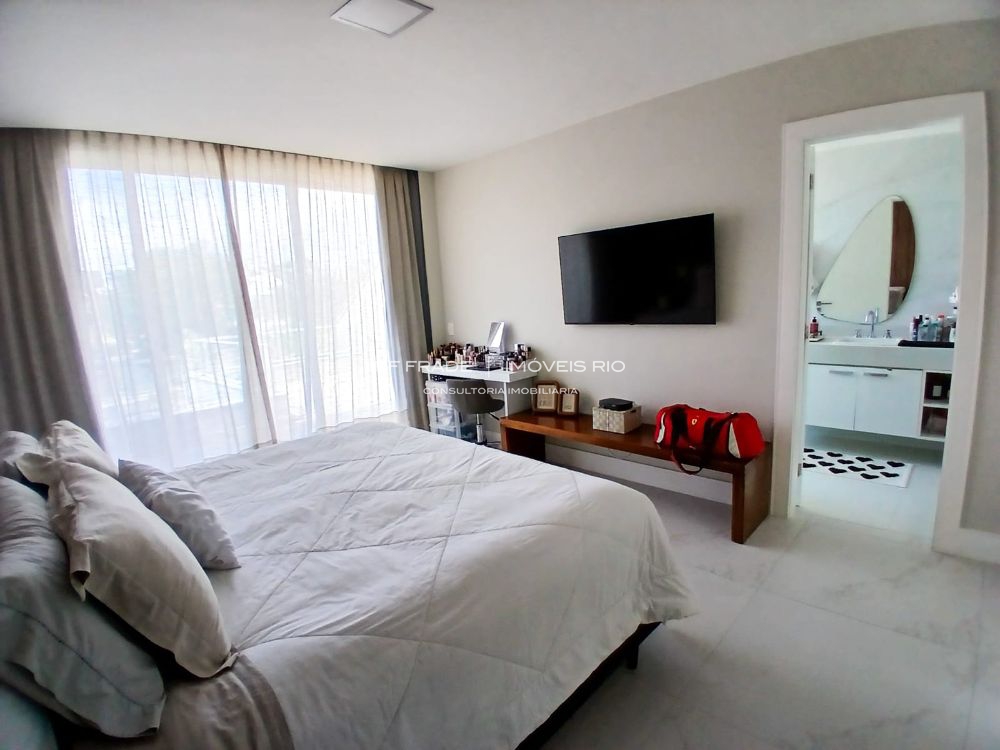 No segundo pavimento, a área íntima conta com três suítes, incluindo uma suíte master com closet.