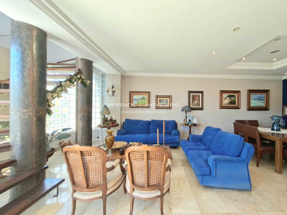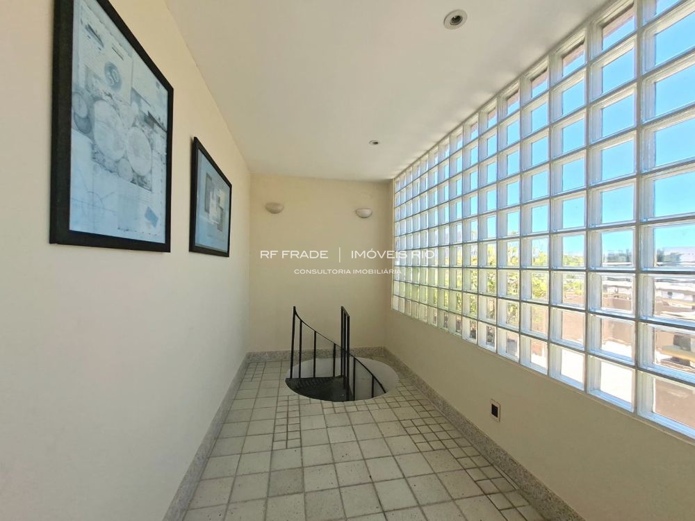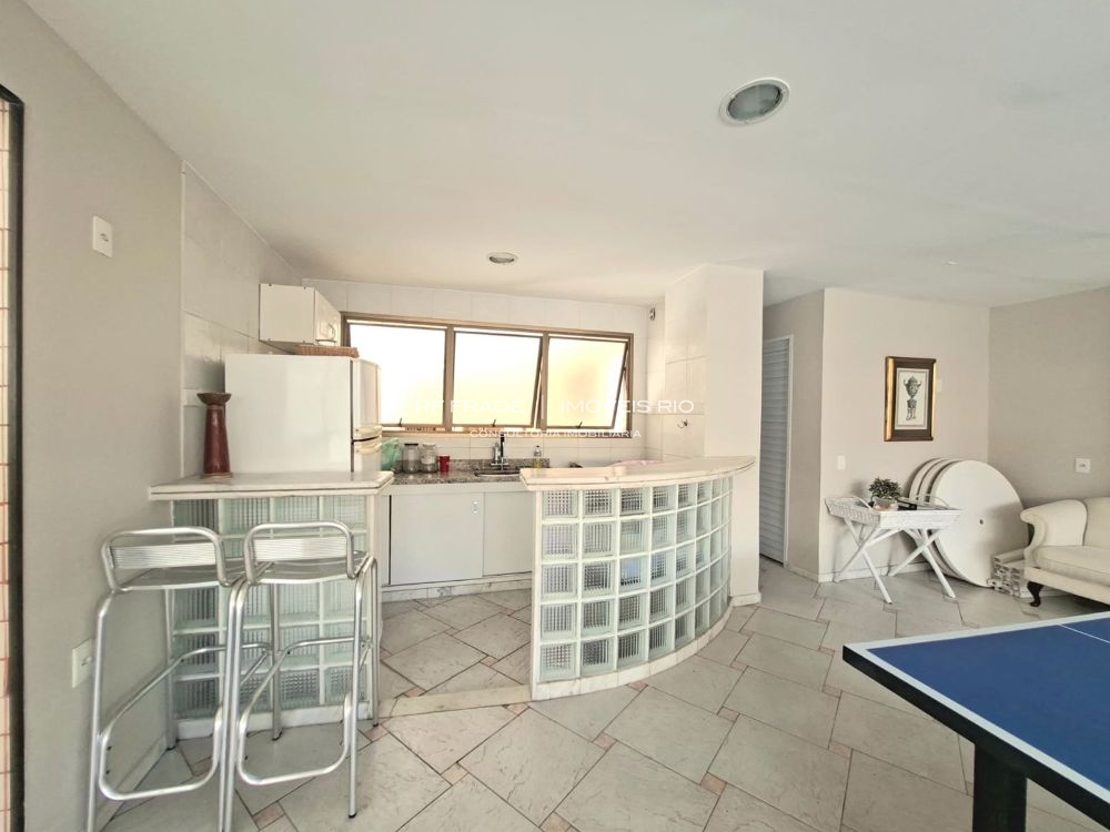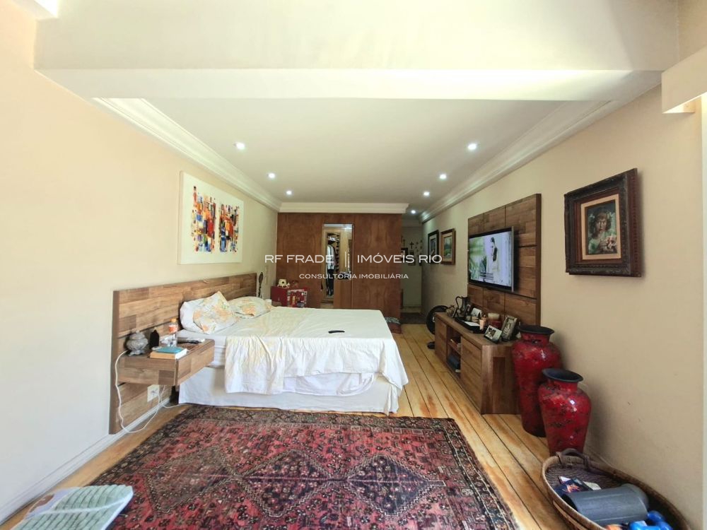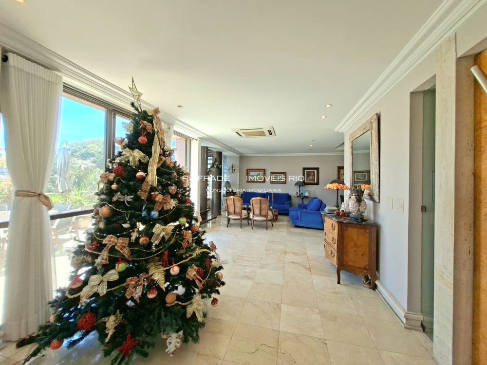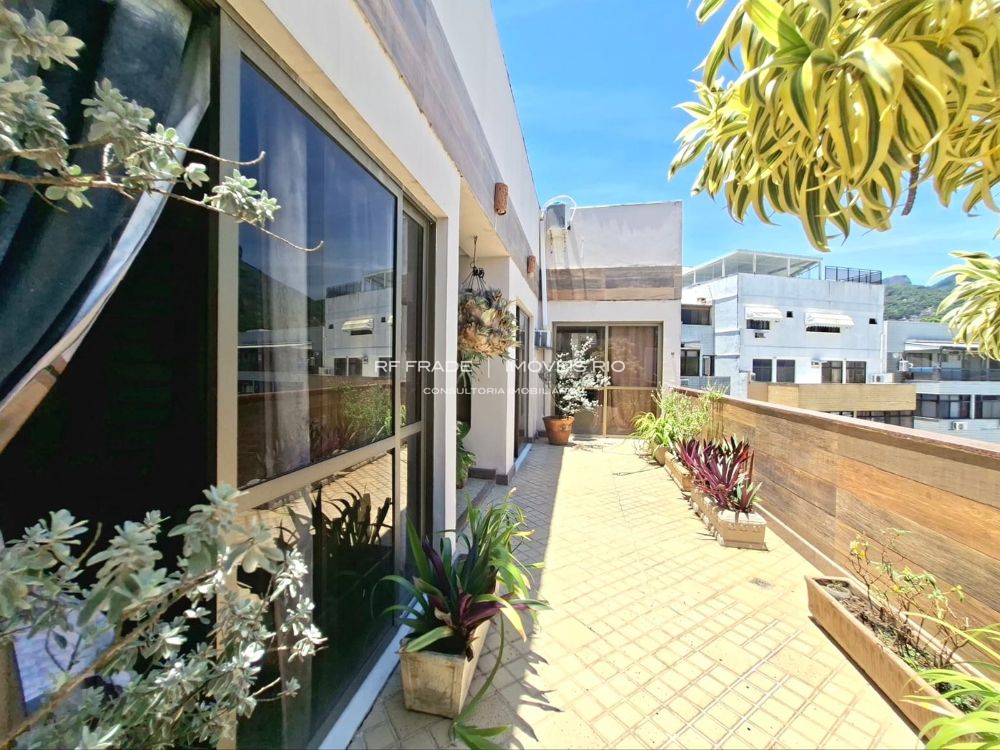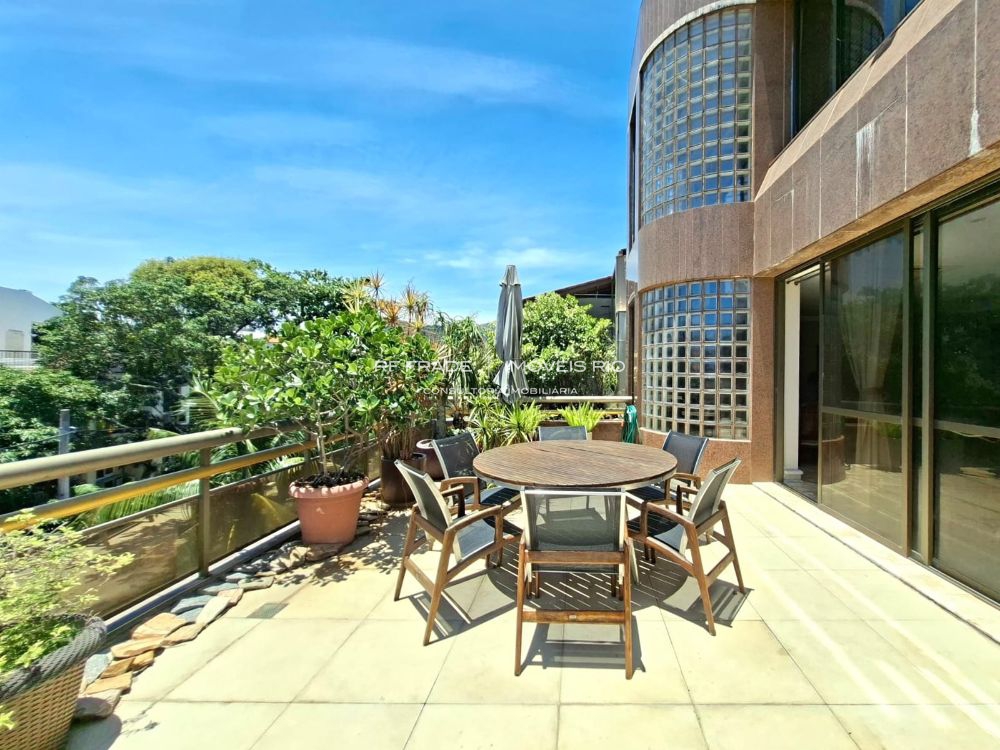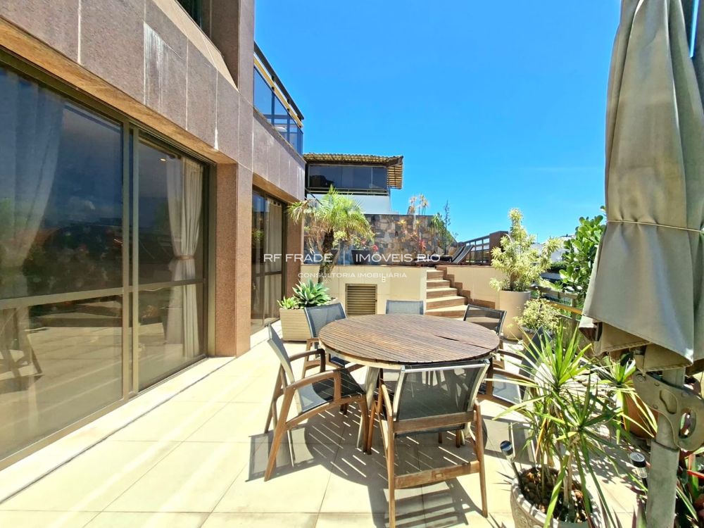 Cobertura duplex com 593 m² na quadra da praia e com vista para a Pedra da Gávea nos fundos.
