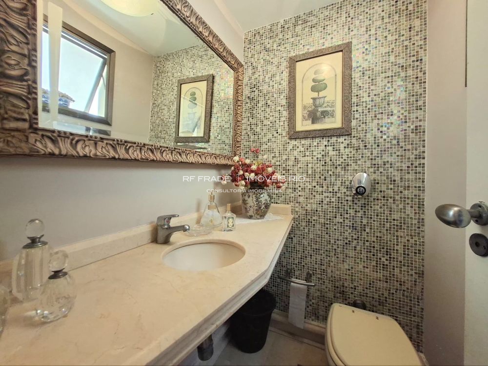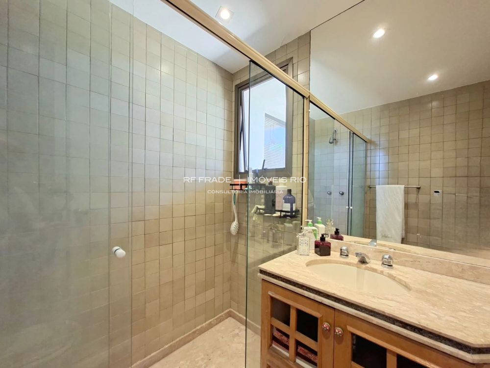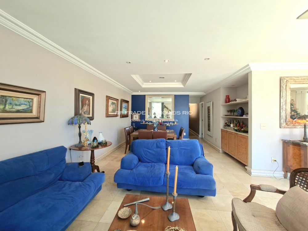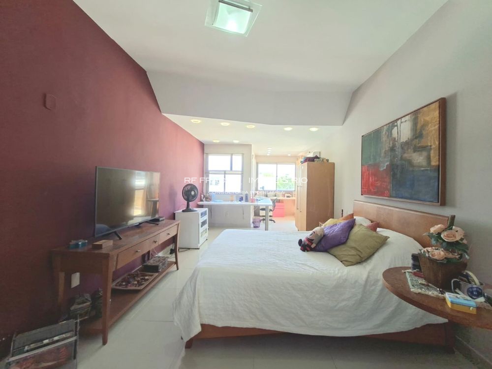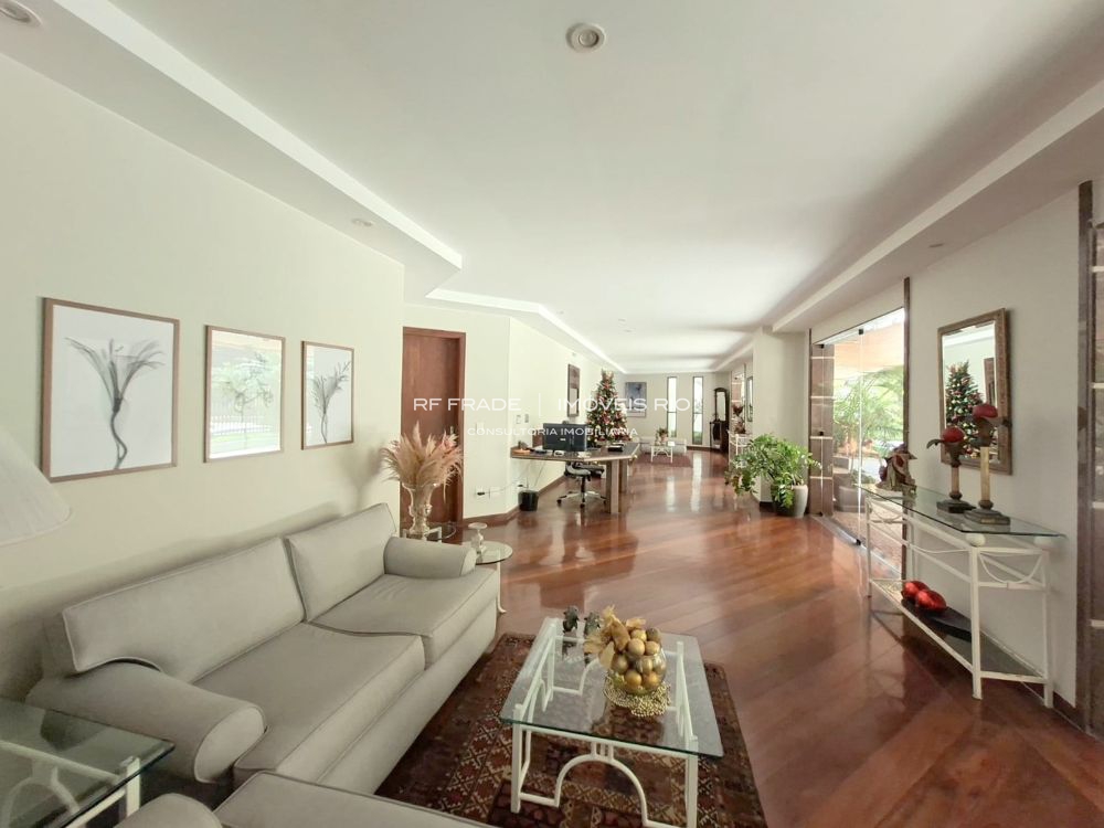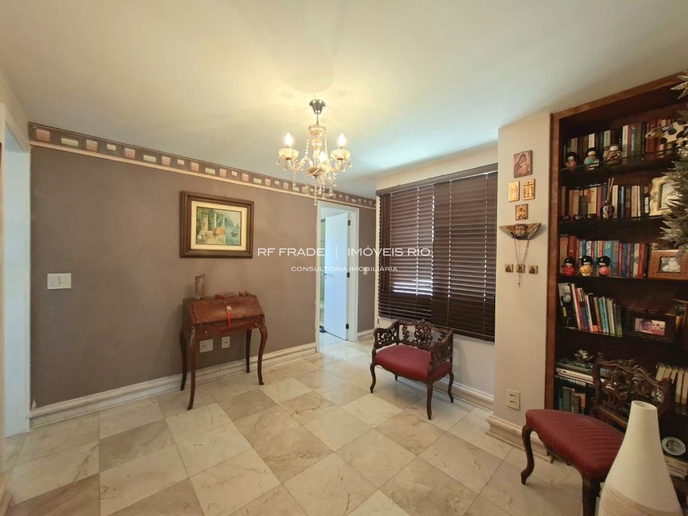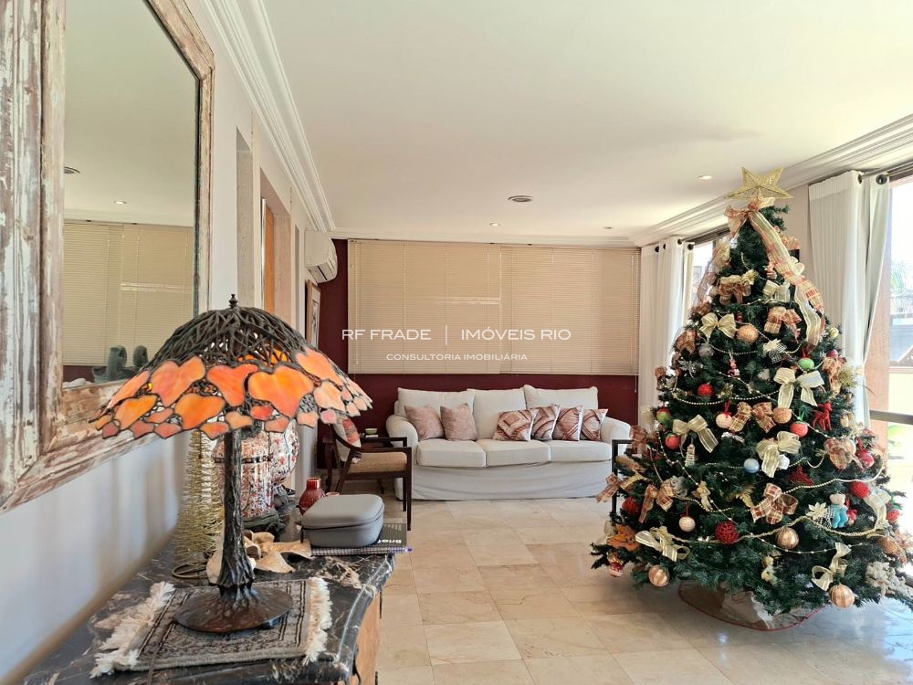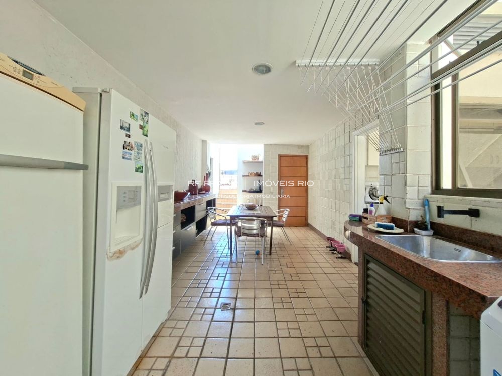 Cobertura duplex com 593 m² na quadra da praia e com vista para a Pedra da Gávea nos fundos.