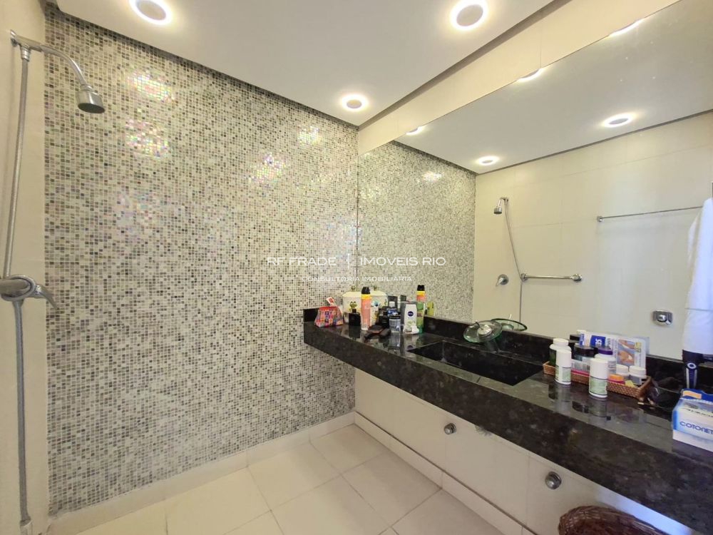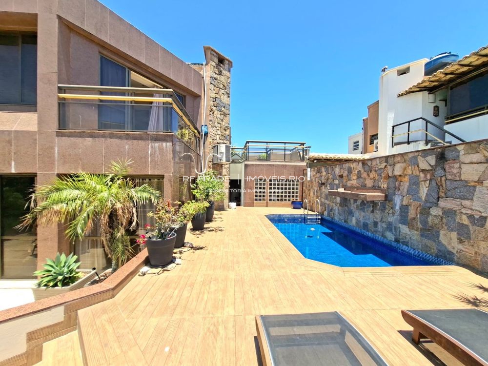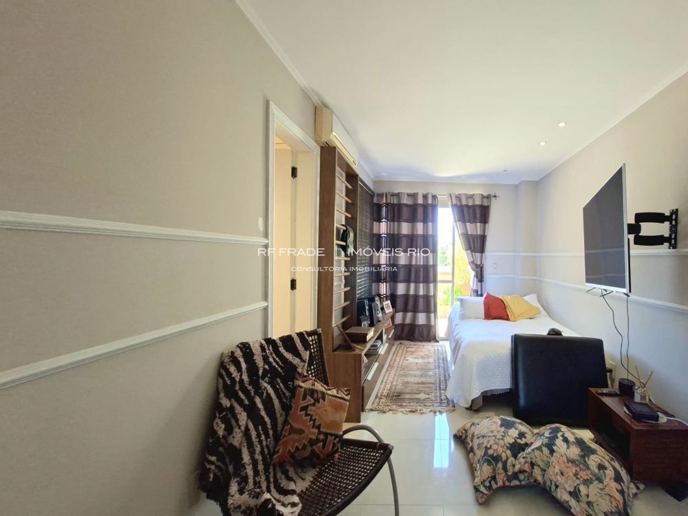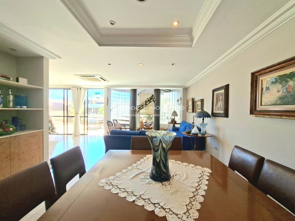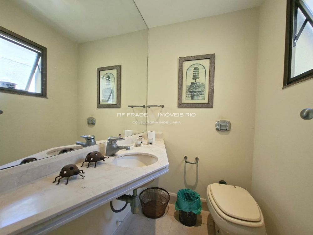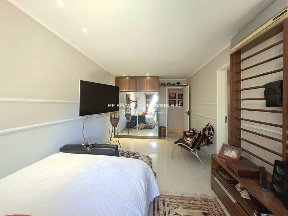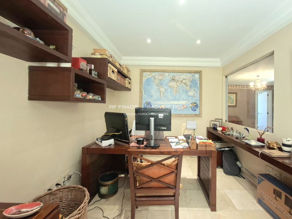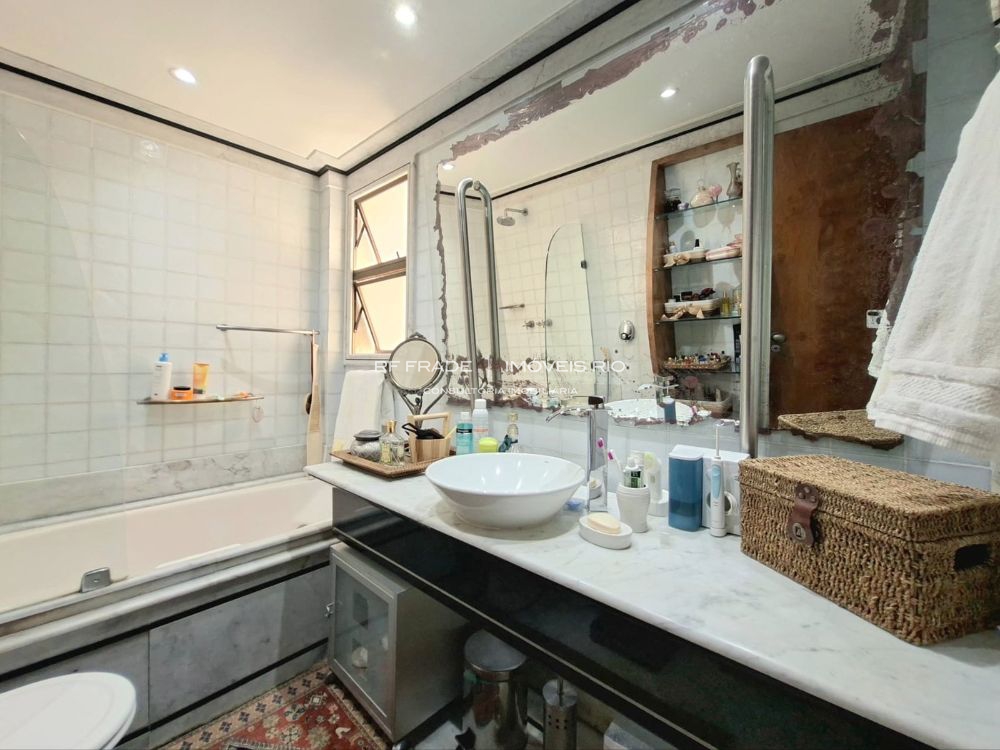 Cobertura duplex com 593 m² na quadra da praia e com vista para a Pedra da Gávea nos fundos.