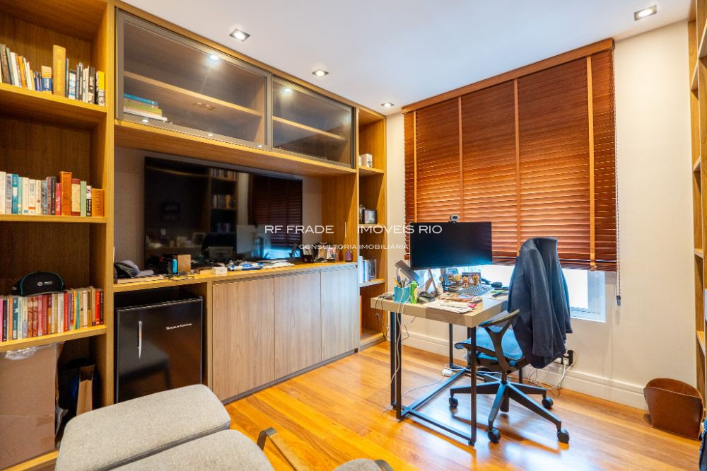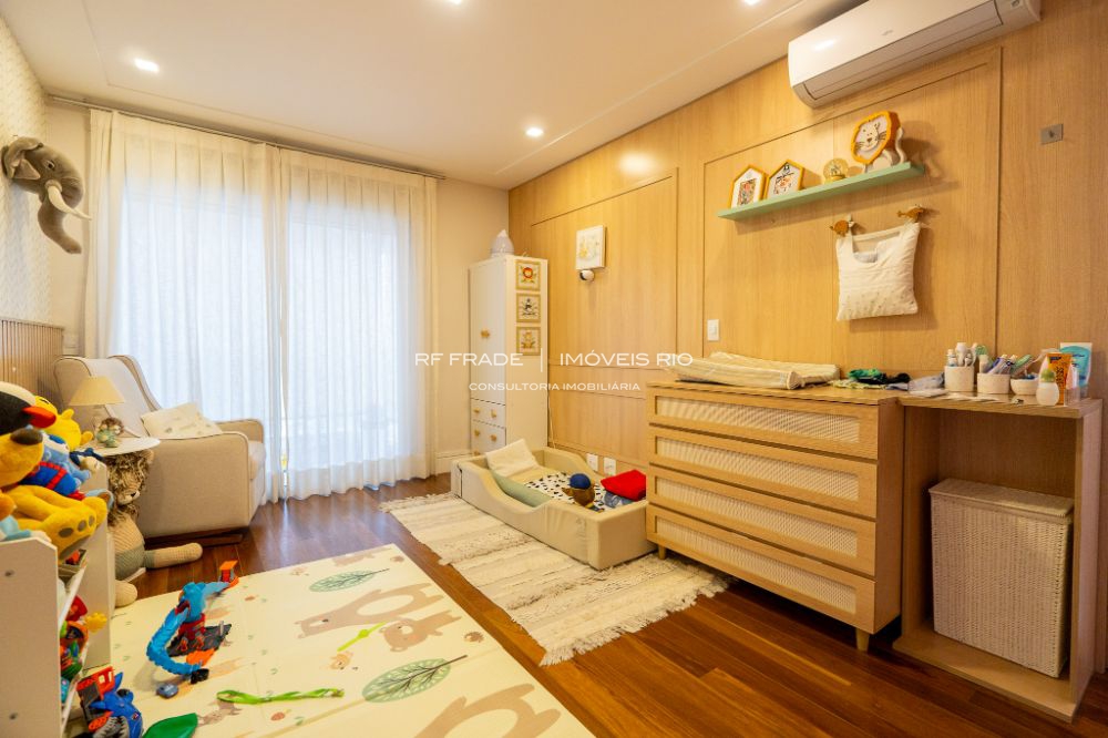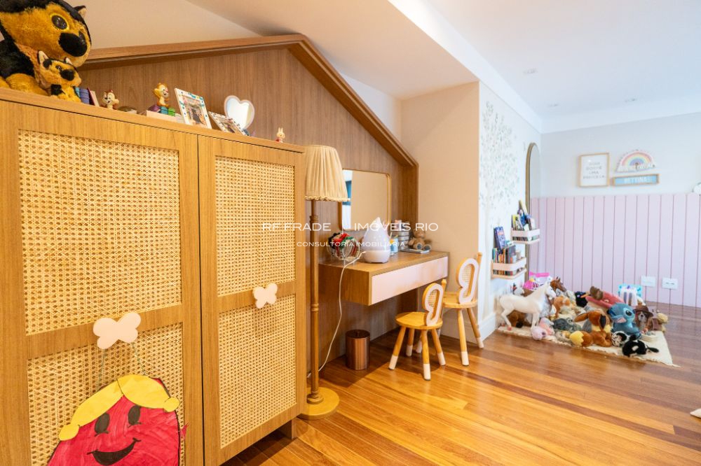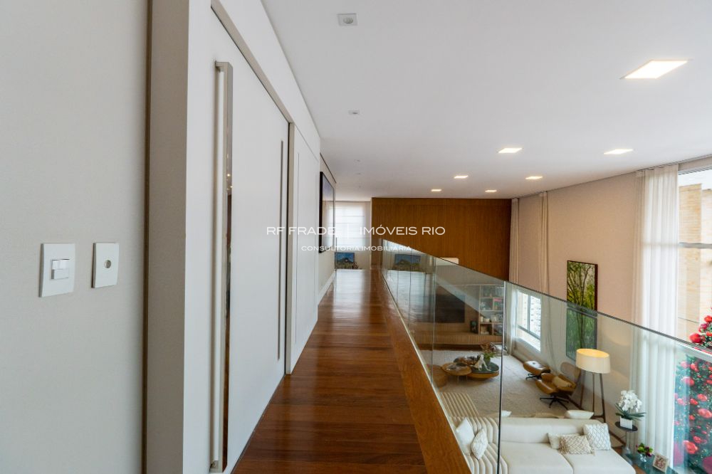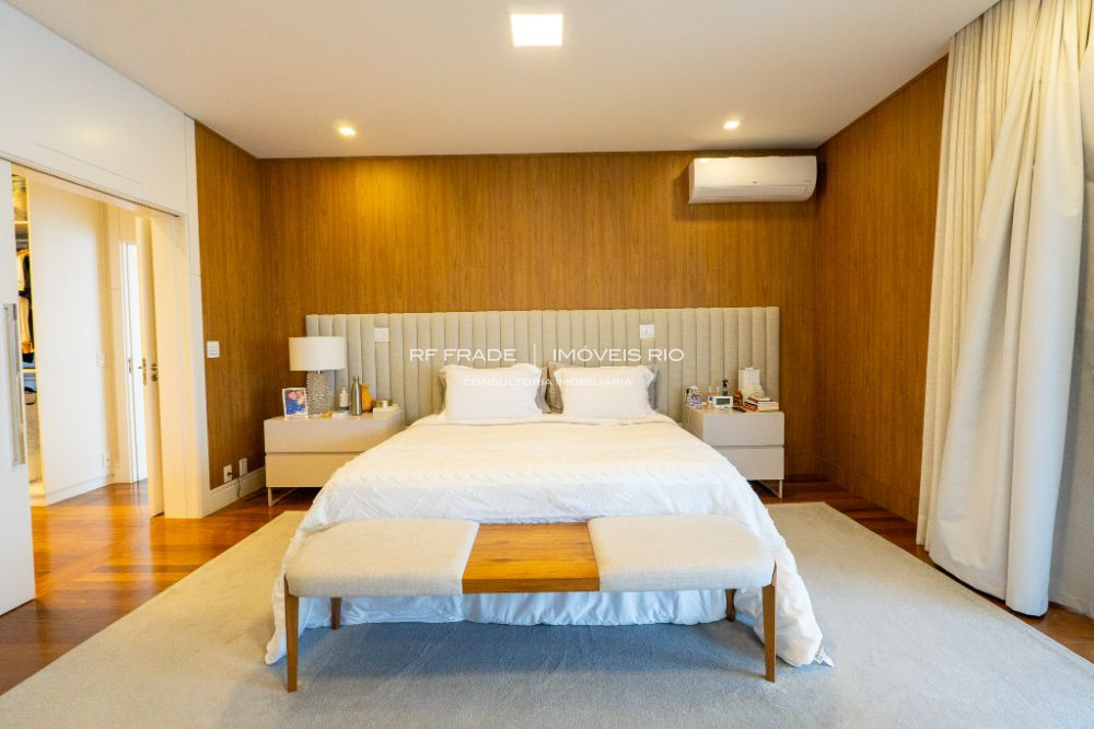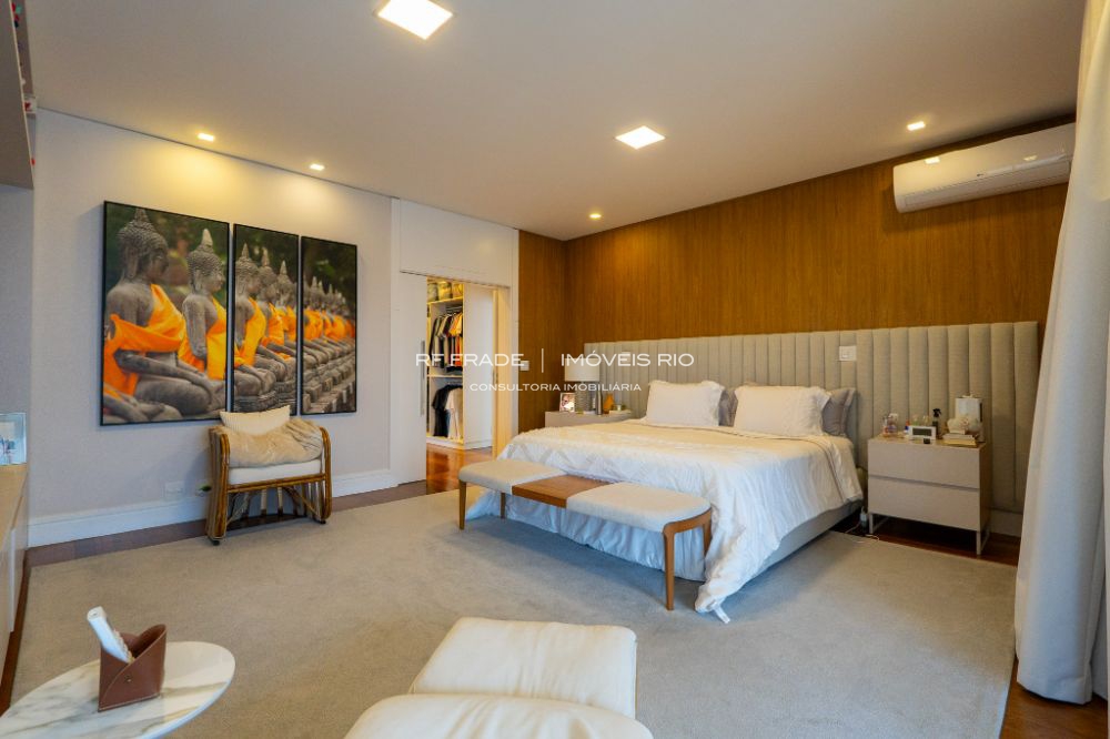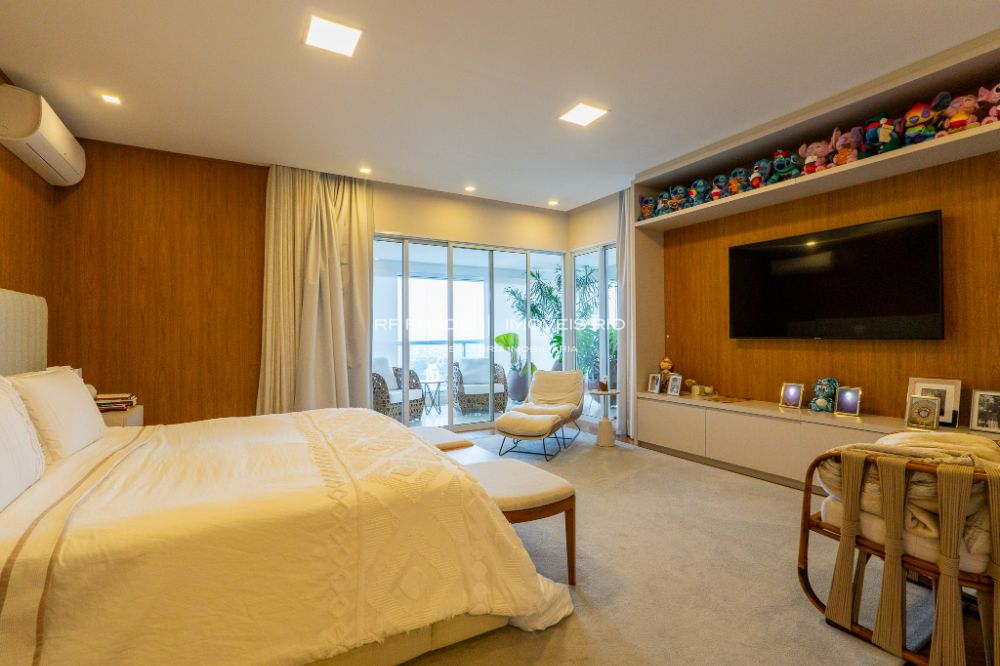A área íntima é composta por cinco suítes espaçosas, projetadas para proporcionar máximo conforto e sofisticação. A residência conta ainda com um amplo escritório com varanda, além de um segundo escritório, oferecendo versatilidade para diferentes necessidades da vida contemporânea.