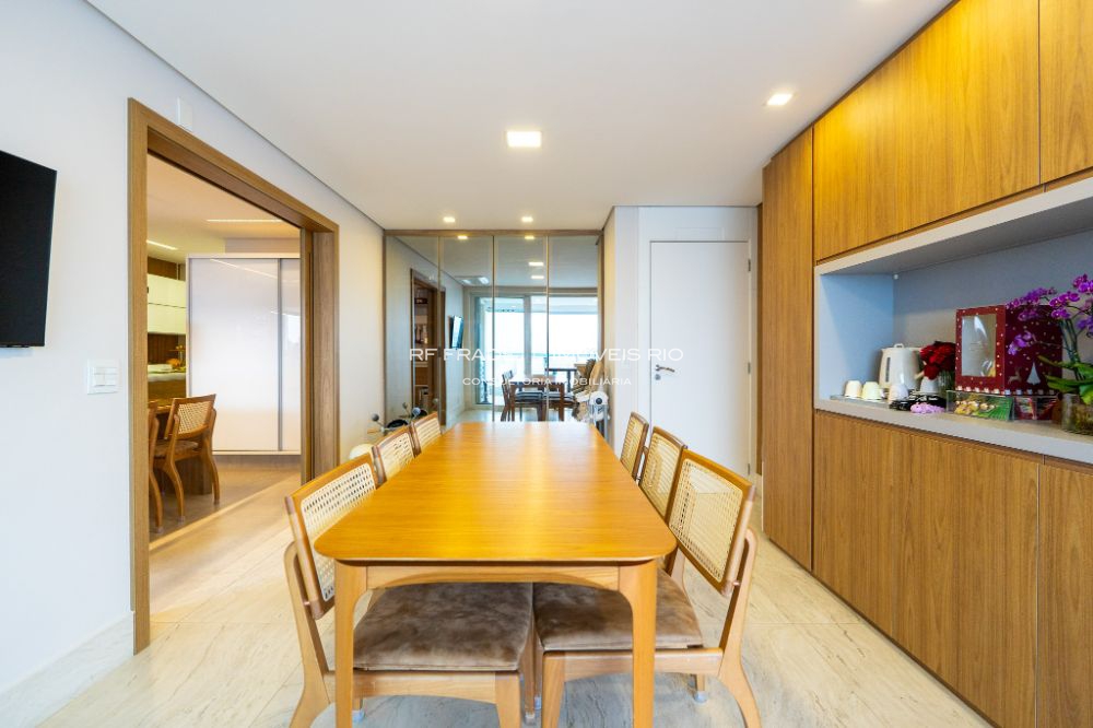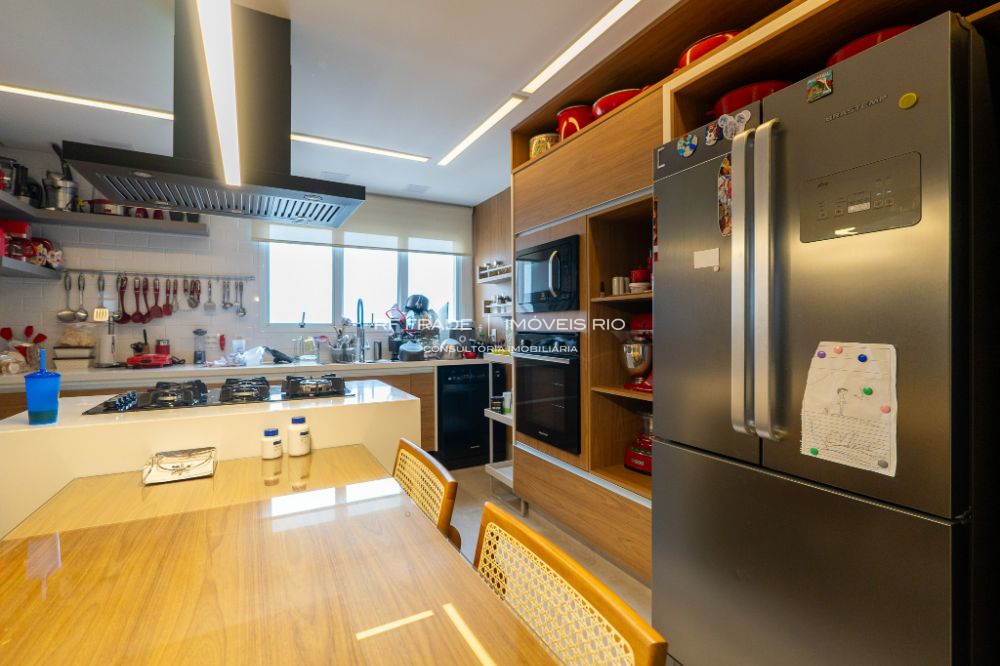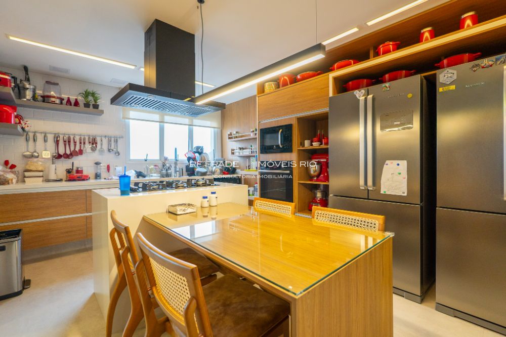 A cozinha, generosa em espaço e funcionalidade, é complementada por uma copa, criando um ambiente acolhedor para o dia a dia.